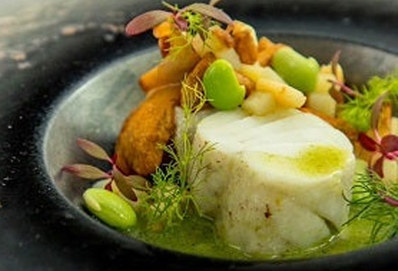 基本コースで「小前菜」「冷前菜」「温前菜」「魚料理」「肉料理」「小デザート」「デザート」の7品をお召し上がりいただきます。どれも丁寧に丁寧に、熱海、伊東の旬の素材を活かしたフレンチのコースです。